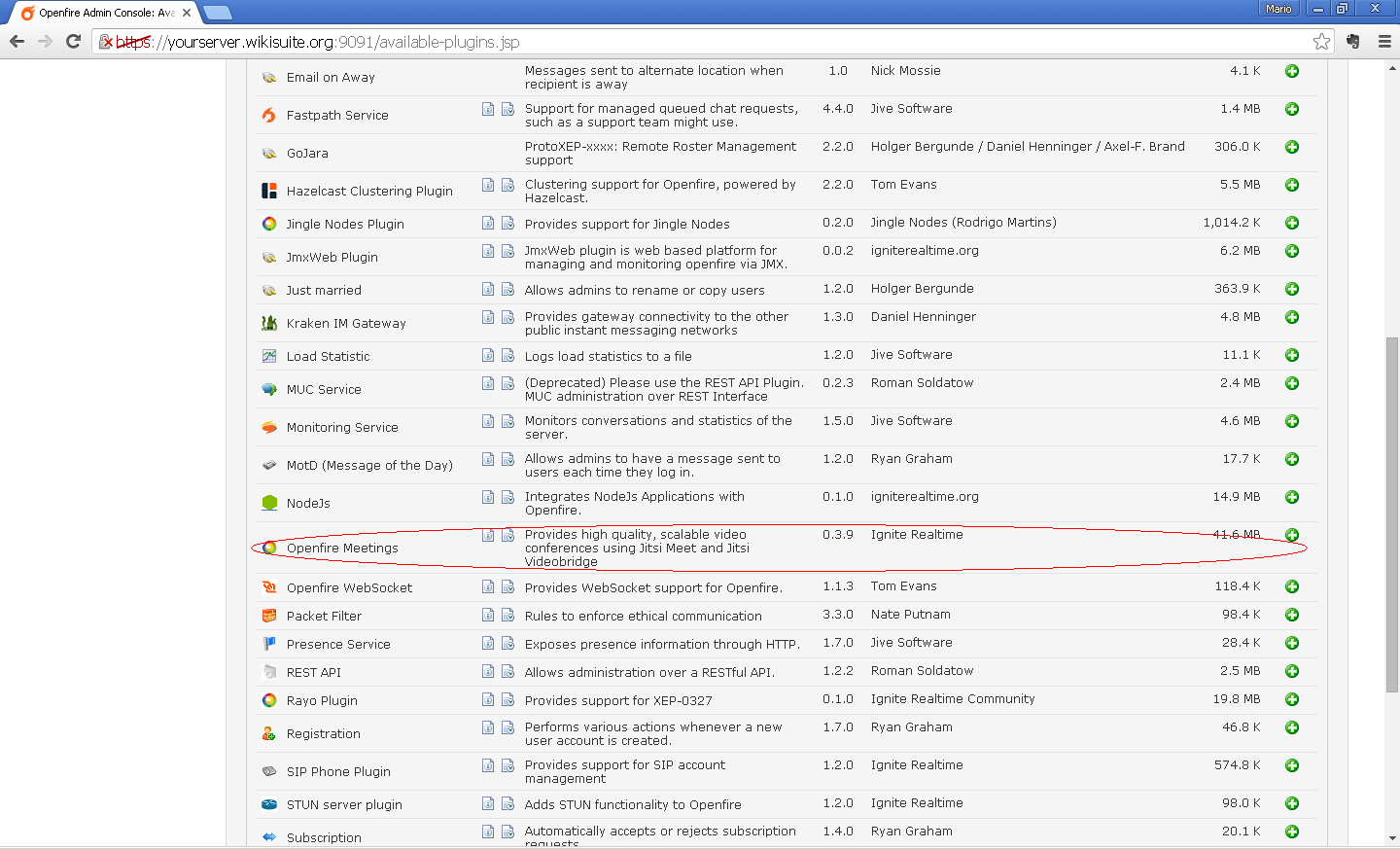 - Plugins: Fastpath, Openfire meetings, Monitoring