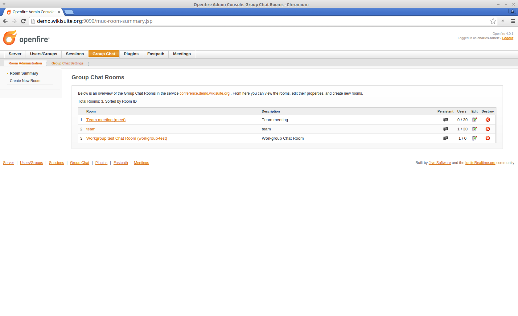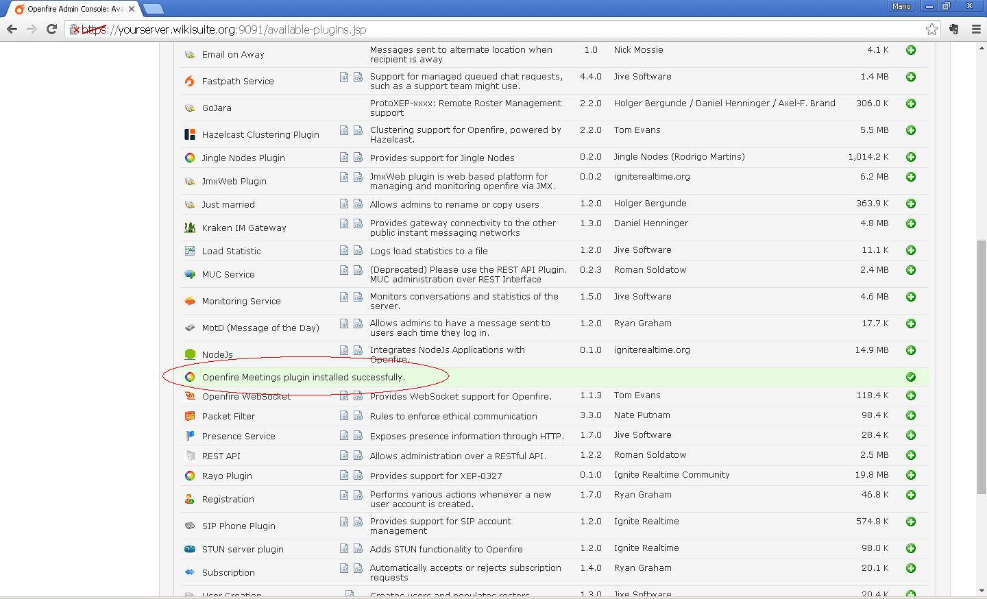 Go to "Server / Communication and Collaboration / Openfire" in the menu (https://yourserver.wikisuite.org:81/app/openfire):
