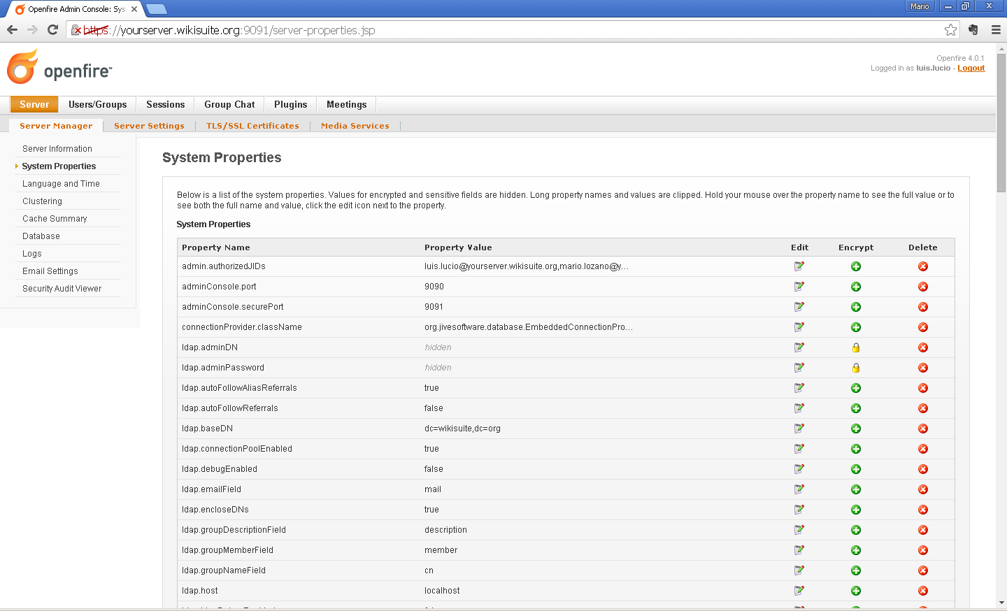 - You can access the OpenFire certificate store at: https://yourserver.wikisuite.org:9091/security-certificate-store-management.jsp