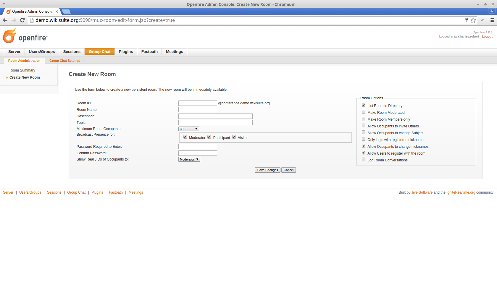 Fill out the appropriate fields (Minimum Room ID, Room Name and Description). Finish by clicking on the Save Changes button.