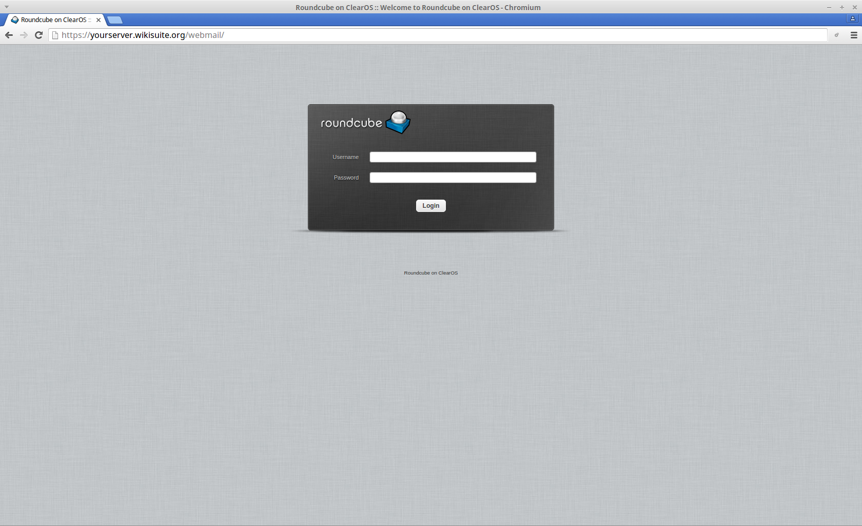 Go to https://yourserver.demo.wikisuite.org/webmail to access Roundcube, then log in with your username and password.