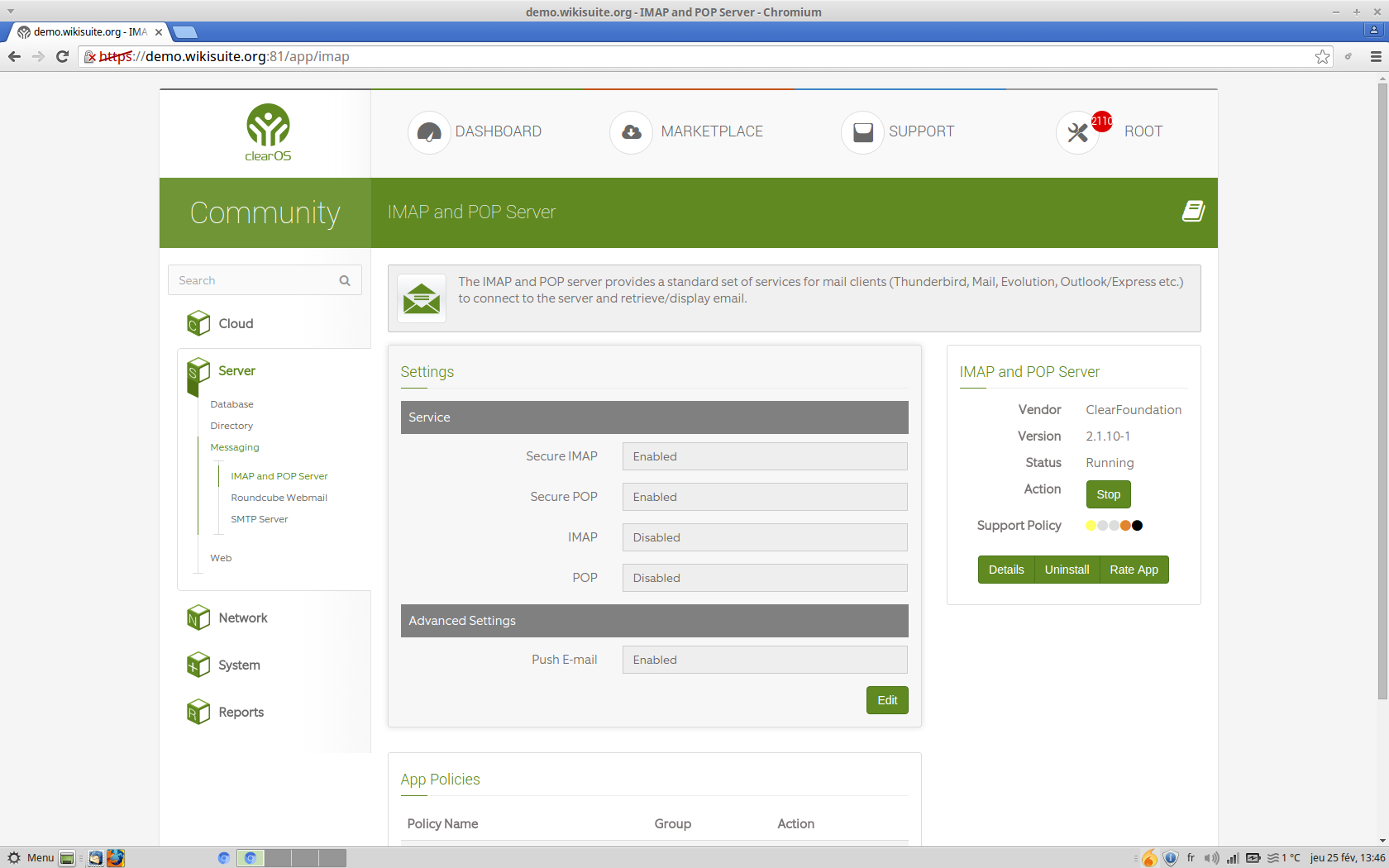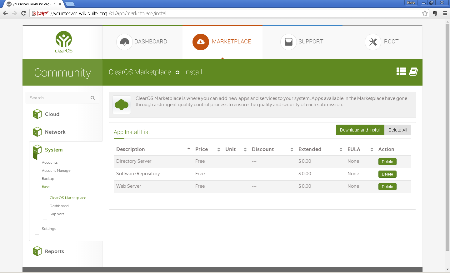 - If you want to use it, make sure LetsEncrypt is fully set up before you continue (See http://wikisuite.org/How-to-install-Let-s-Encrypt-SSL-certificates-on-ClearOS).
